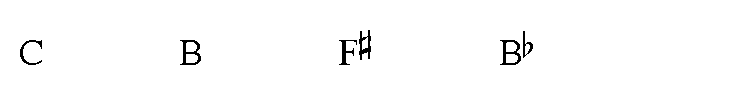 C-Dur, H-Dur = engl. B major, Fis-Dur, B-Dur = engl. Bb major