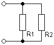 Formula (equation) for the calculation of two resistances R1 and R2 connected in parallel:
