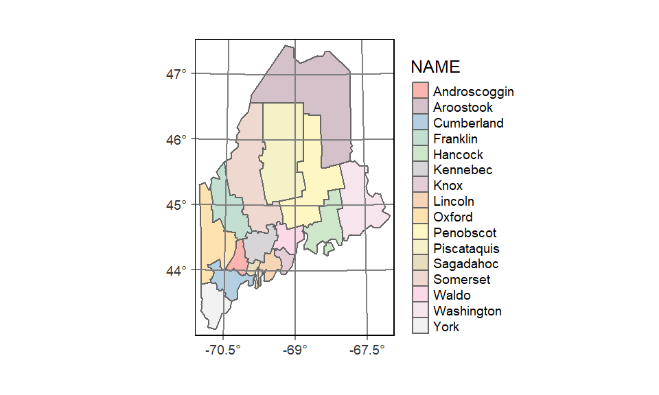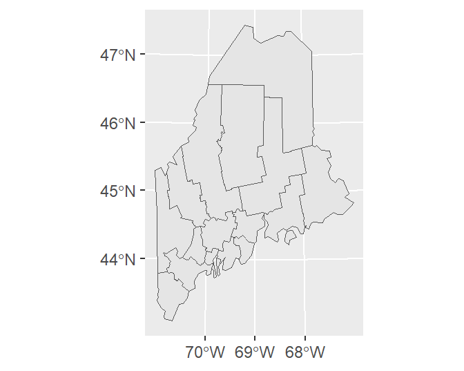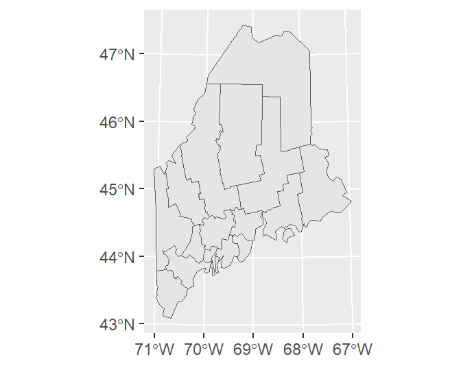 As with any ggplot operation, you can also pass the object’s name to the geom_sf() instead of the ggplot function as in: