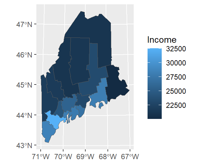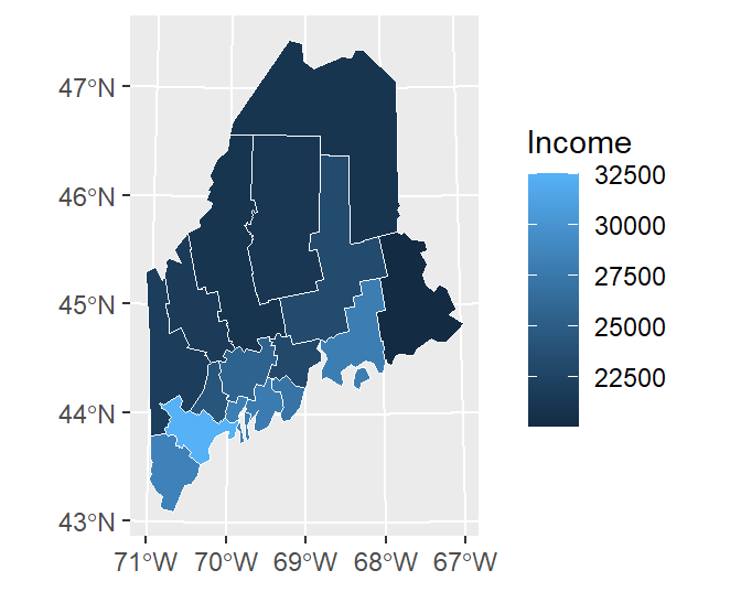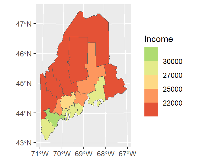 ggplot(data = s.sf, aes(fill = Income)) + geom_sf() +