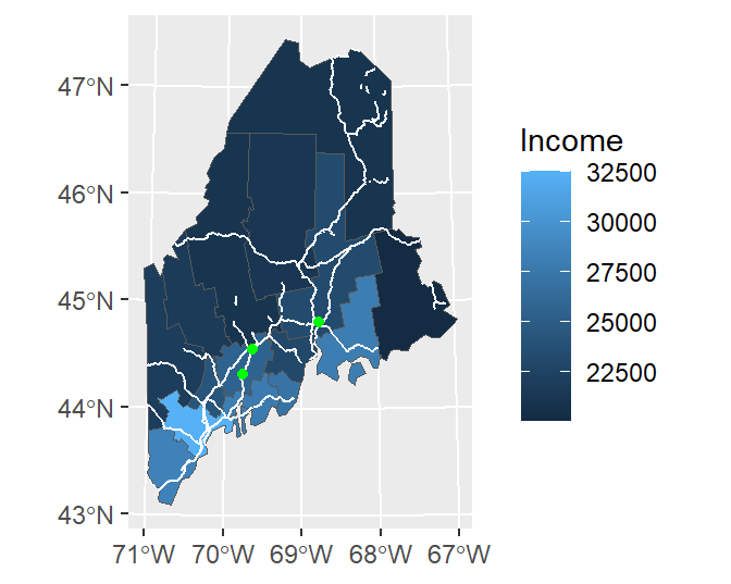 Note that plot_sf requires that the layers be in the same coordinate system. For example, adding p.sf will not show the points on the map given that it’s in a different coordinate system.